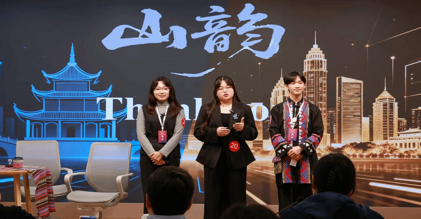获奖团队由我院2024级市场营销专业严天韵、文公司2023级汉语国际教育黄叶荷、机电公司2024级电子工程及其自动化黄文彪三位同学组成。在公司英语教师董芊老师的悉心指导下,团队参赛作品《山韵》立意新颖,语言表达流畅,获得了评委专家的一致好评与特别表扬。